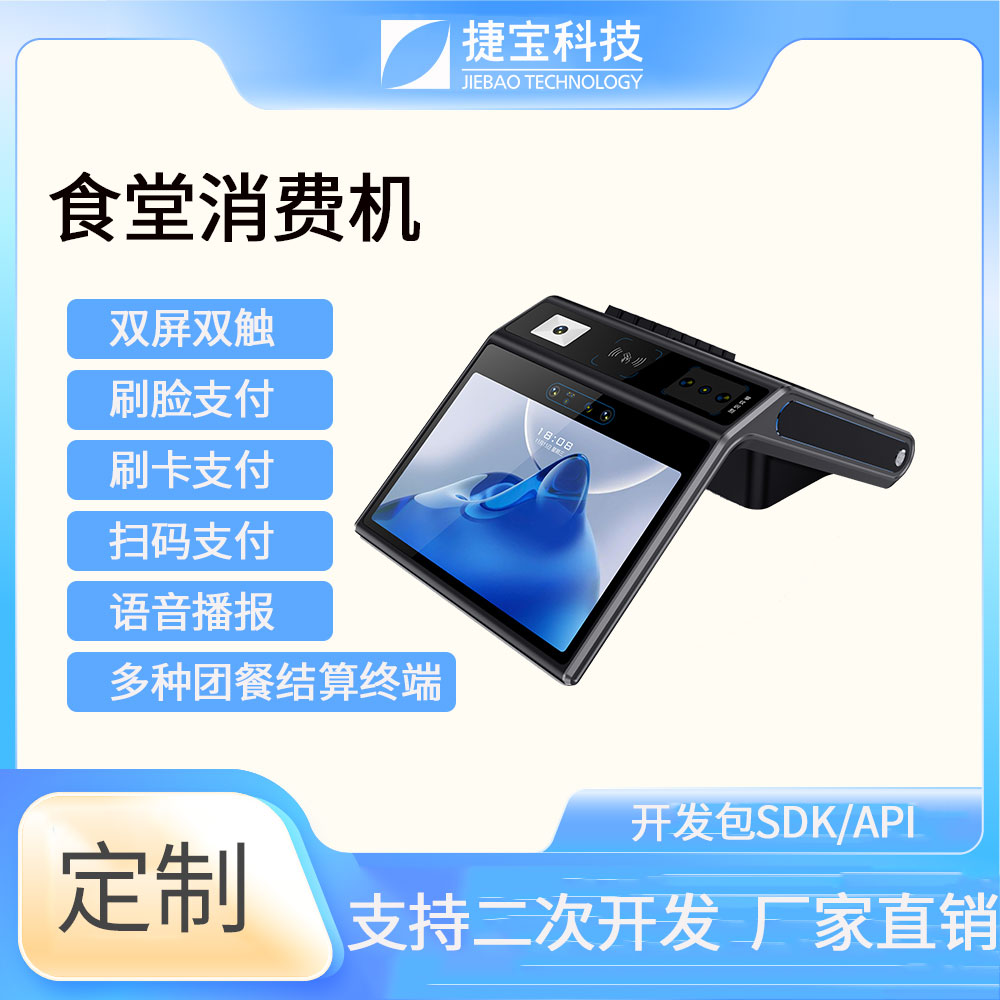 捷寶科技是國內(nèi)最早推出基于Android系統(tǒng)智能硬件的廠家之一。產(chǎn)品形態(tài)涵蓋手持、臺式、立式、掛式、柜式、單屏、雙屏;功能上圍繞NFC識別、條碼識別、生物識別,AI識別等技術(shù)大類,開發(fā)出可識別CPU卡、M1卡、射頻卡、二代身份證、社保卡、一維條碼掃描、掃碼支付、指紋識別、人臉識別、掌靜脈識別、虹膜識別、AI菜品識別、智能語音識別等功能的各類產(chǎn)品。